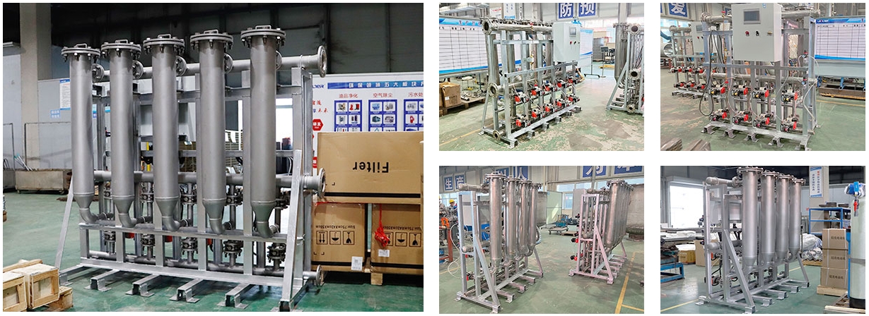 列管式(shì)反衝洗過濾器由罐(guàn)體、濾芯組(zǔ)件、設備就近連接管線、自動閥門、控製櫃等組成。在過(guò)濾器殼體的內部設置有多根濾管,汙液從濾管外麵流向濾(lǜ)管內(nèi)部,然後從過濾器的(de)集液腔流出。控製采用壓差/時間控製(壓差優先),當過濾器進出口的壓差達到設定的壓差(chà)極(jí)限時,過濾(lǜ)器進入反向衝洗過程。需進行反衝洗的濾管單元中止過濾,進行反衝洗。可供(gòng)選擇濾芯種類:金(jīn)屬燒結濾芯、楔形濾芯、絲網(wǎng)濾芯、聚丙烯濾芯、陶瓷濾芯。